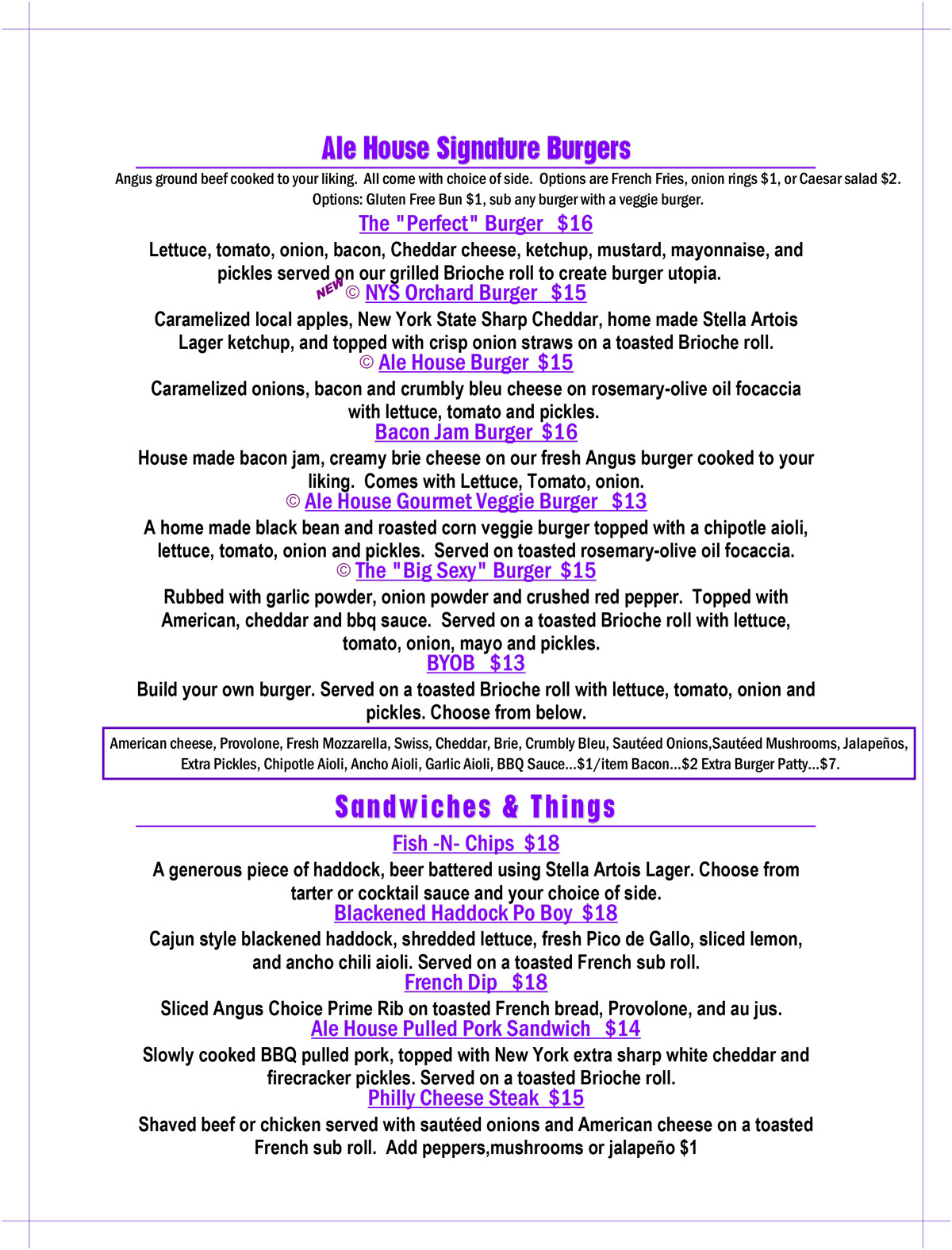 Choose from our extensive, ever changing 20 tap craft beer selection with brews from all over the country. Also enjoy our exquisite food menu riddled with a number of signature dishes as well as many appetizers, salads, sandwiches, burgers, flatbreads, and entrees. The bar and restaurant completed its move to the City Centre building at 301 East State St. after 15 years at its Aurora Street location on Nov. 11. The new location is about twice the size of the old venue at 5,300 square feet, and boasts a lot of changes despite only being a few doors down from its original home. ITHACA, NY -- On the night of Jan. 23, the Ithaca Ale House had a packed bar, seating fans of the Bills during the recent playoff game, and diners peeking over the booths as each cheer or sigh rang out in the restaurant.